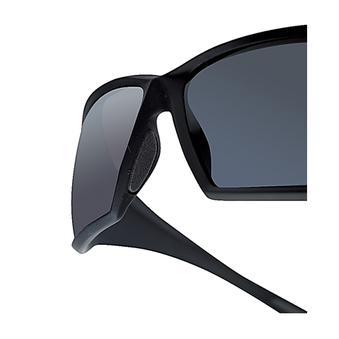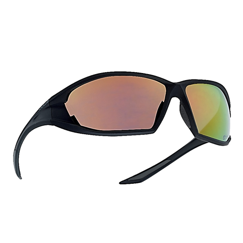 Montura con lente de policarbonato, material mas resistente en cuanto a impactos. Esta gafa dispone de tres tipos de lentes, ahumada, espejada (rojo) y polarizada.