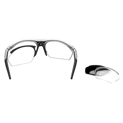Este adaptador se inserta en la propia montura como cualquier gafa sin graduar deportiva. Permite la graduación de lesntes blancas o de color con la graduación integrada en la propia lente. De esta manera ofrece una envolvencia y un campo visual que con otros clips no se llega a conseguir.